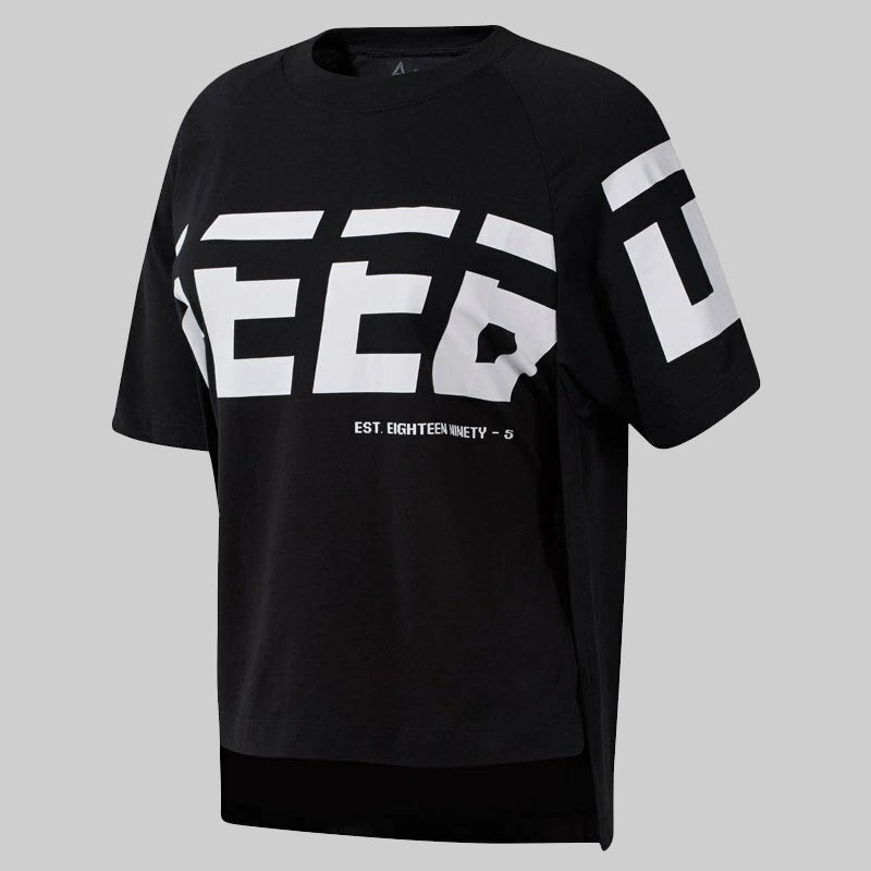 The Reebok Women’s Workout Ready Meet You There Graphic T-Shirt in Black is great for workouts and super comfy. This t-shirt has a bold, modern graphic design. It displays the “REEBOK” logo on the front. It’s great for anyone who wants to stand out and stay active. Reebok Women’s Workout Ready Meet You There Graphic T-Shirt in Black is light and airy. This fabric gives you a smooth fit. When lifting weights, running, or even bending, you can move freely without constraints. The loose fit and short sleeves offer a range of motion that is suitable for different exercise activities. We suggest adding this graphic t-shirt for the next workout.